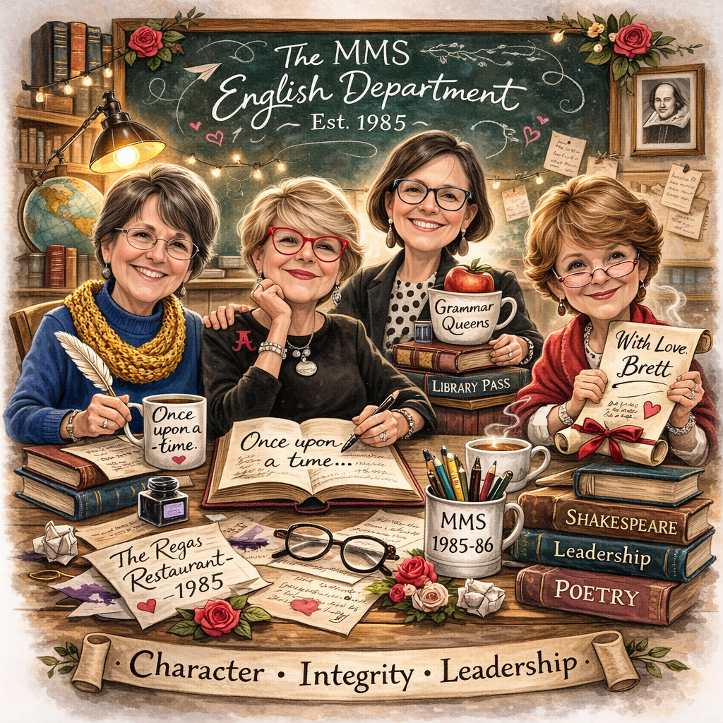 As the year moved onward to Valentine’s Day, the MMS Y-Teens began a fundraiser — selling Valentine messages to be delivered during last period to a secret or not-so-secret Valentine. One of us English teachers was the Y-Teen sponsor. It didn’t take long for Brett to approach, inquiring about the Valentine messages. We assumed he was volunteering to help deliver them. He was always volunteering to help us. He really had too much energy. But no — he wanted to send a Valentine to the young, cute, single, Vandy graduate Maria Cardona, who taught 8th grade PE. Furthermore, he didn’t want to send a silly middle school Valentine message. He wanted poetry — poetry only a seasoned English teacher could provide (that was way before AI).